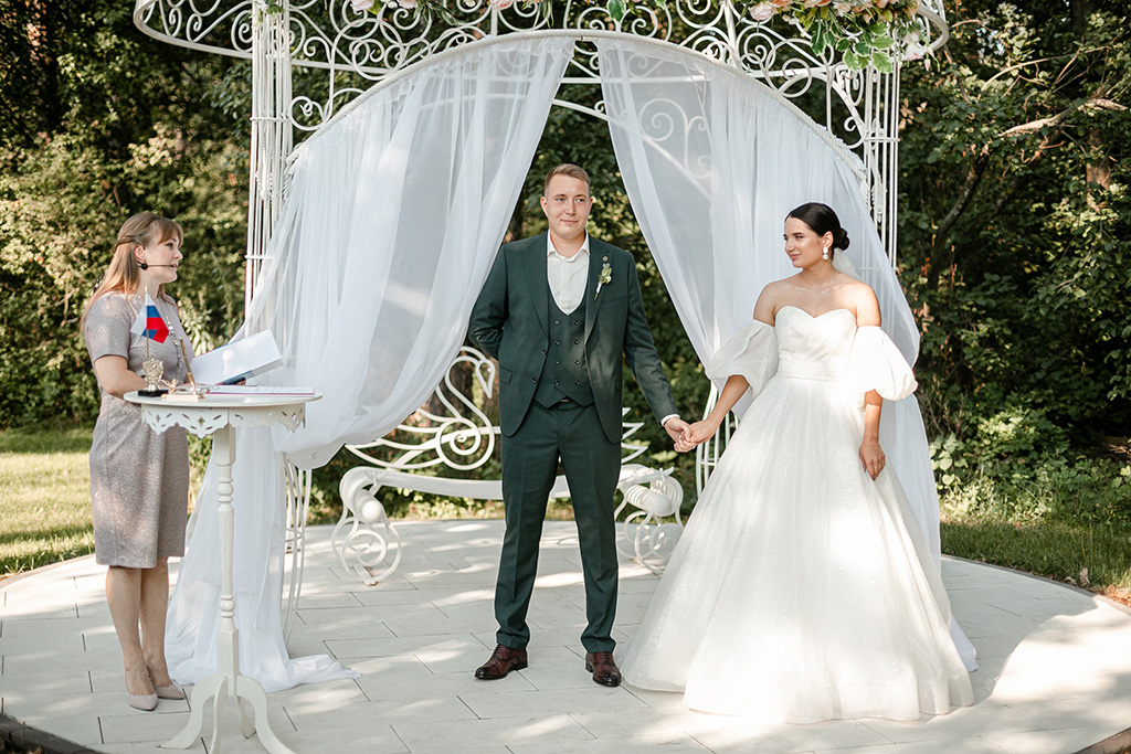 2.Больше времени Еще один плюс выездной церемонии – отсутствие жесткого тайминга. Здесь нет очереди, вам не нужно освобождать зал для следующей пары. У гостей будет достаточно времени для поздравлений, а фотограф получит шанс без лишней суеты сделать продуманные качественные снимки сразу после того, как вы обменялись кольцами.